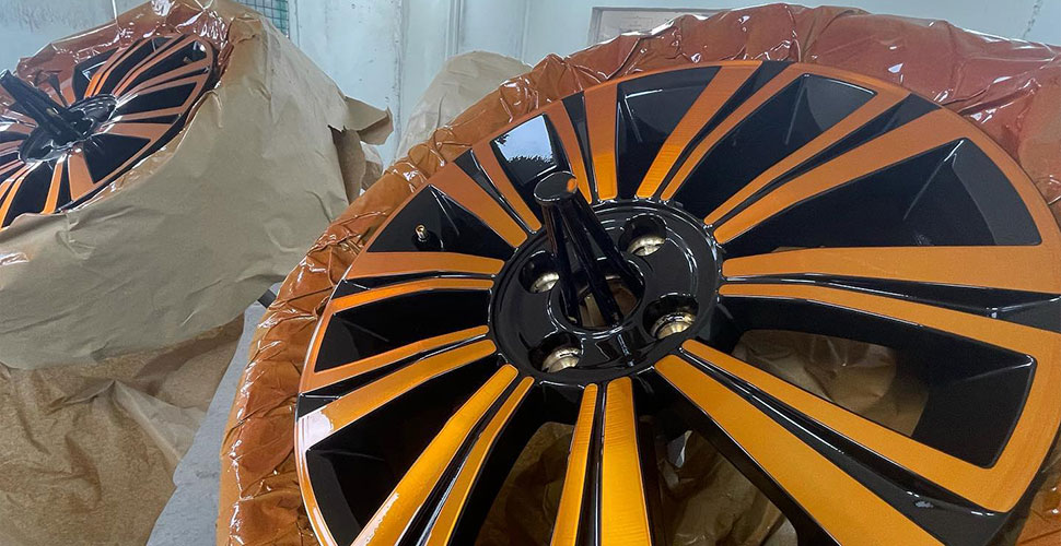 To remove diamond cut alloy wheel corrosion and damage, we can perform a precise CNC diamond cutting of the wheels and then apply a wet paint finish followed by a clear lacquer coat.
